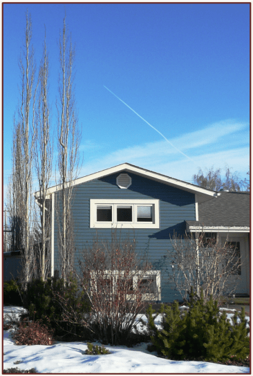 This landscape was also featured in my last post. I’ve included another photo, (minus the lopsided light fixture), because it’s an excellent example of how colourful a winterscape can be. Photo: Sue Gaviller